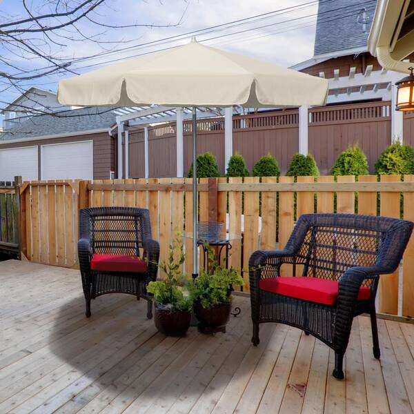 7.5 ft. Aluminum Market Patio Umbrella Fiberglass Ribs and Push-Button Tilt with Valance in Antique Beige Polyester