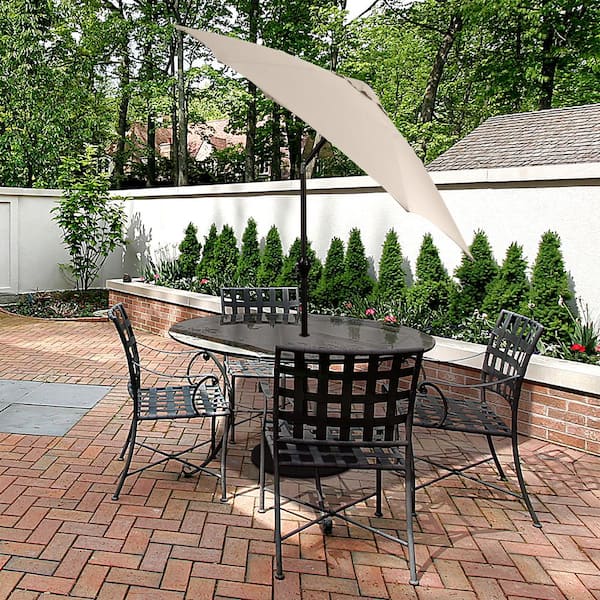 7.5 ft. Aluminum Market Patio Umbrella with Fiberglass Ribs and Crank Lift in Antique Beige Polyester