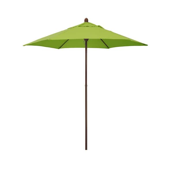 7.5 ft. Wood-Grained Steel Market Patio Umbrella with Push Lift in Lime Green Polyester
