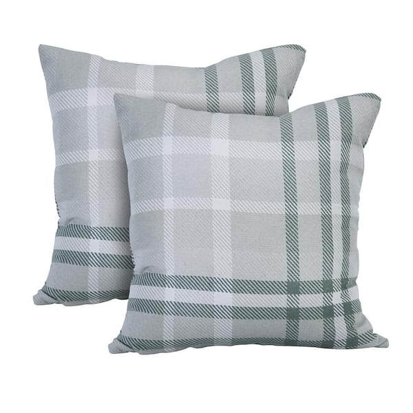 Tartan Jade Square Outdoor Accent Lounge Throw Pillow (Set of 2)