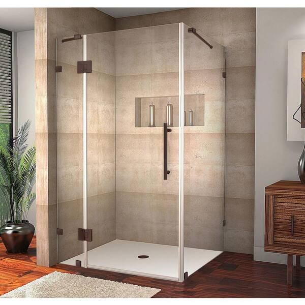Avalos 56 in. W. x 30 in. x 72 in. Rectangular Pivot Frameless Corner Shower Enclosure in Bronze with Clear Glass