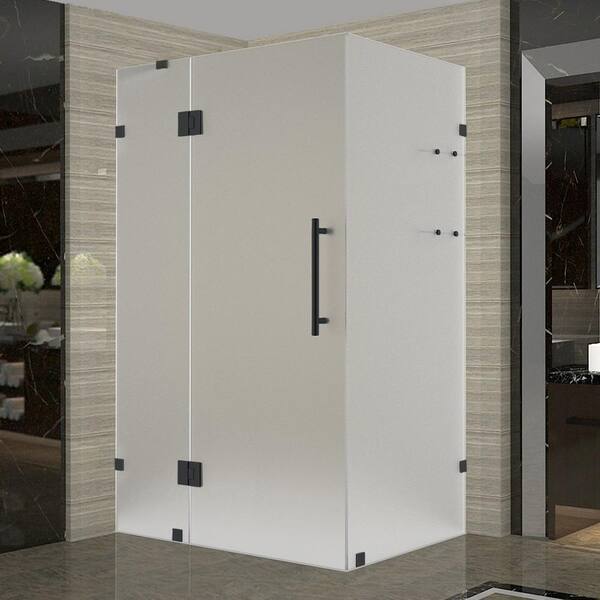 Avalos GS 60 in. W. x 34 in. x 72 in. Rectangular Pivot Frameless Corner Shower Enclosure in Matte Black Frosted Glass
