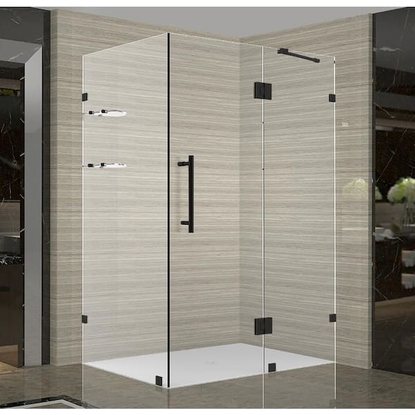Avalux GS 35 in. x 30 in. x 72 in. Frameless Corner Hinged Shower Door with Glass Shelves in Matte Black