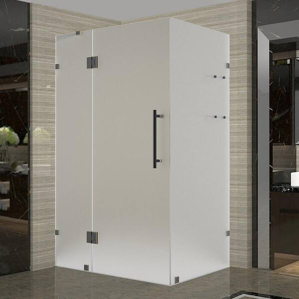 Avalux GS 47 in. x 36 in. x 72 in. Rect. Pivot Frameless Corner Shower Enclosure in Oil Rubbed Bronze with Frosted Glass