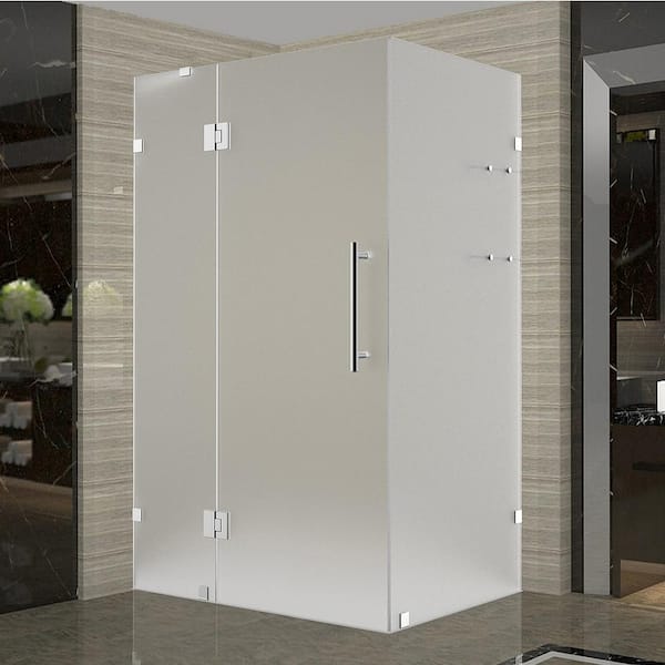 Avalux GS 55 in.x32 in.x72 in. Rectangular Pivot Frameless Corner Shower Enclosure in Stainless Steel w/ Frosted Glass