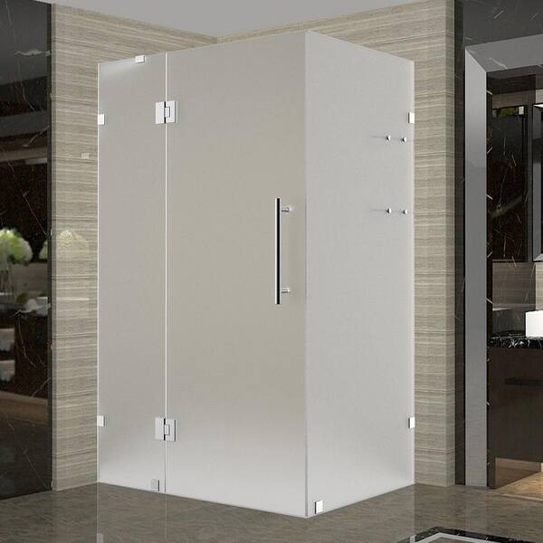 Avalux GS 57 in. W x 38 in. x 72 in. H Rectangular Pivot Frameless Corner Shower Enclosure in Chrome with Frosted Glass
