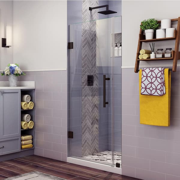 Belmore 30.25 in. to 31.25 in. x 72 in. Frameless Hinged Shower Door in Bronze