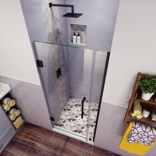 Belmore 37.25 in. to 38.25 in. x 72 in. Frameless Hinged Shower Door in Oil Rubbed Bronze