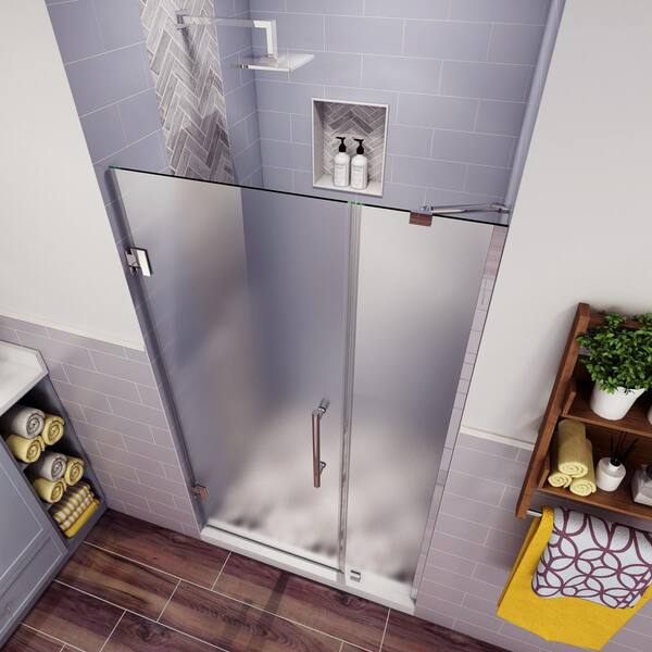 Belmore 39.25 in. to 40.25 in. x 72 in. Frameless Hinged Shower Door with Frosted Glass in Chrome