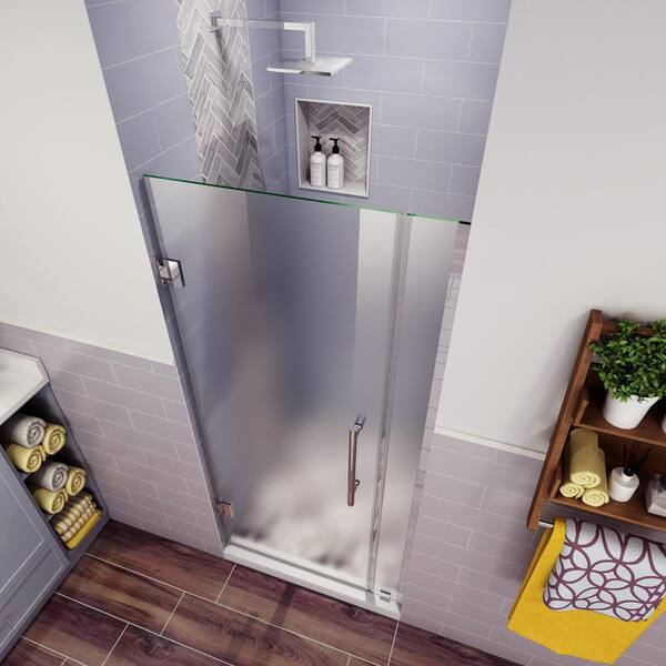 Belmore 44.25 in. to 45.25 in. x 72 in. Frameless Hinged Shower Door with Frosted Glass in Chrome