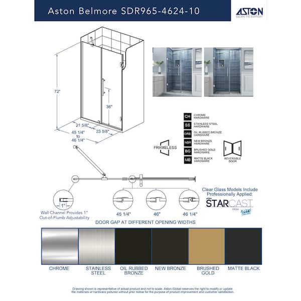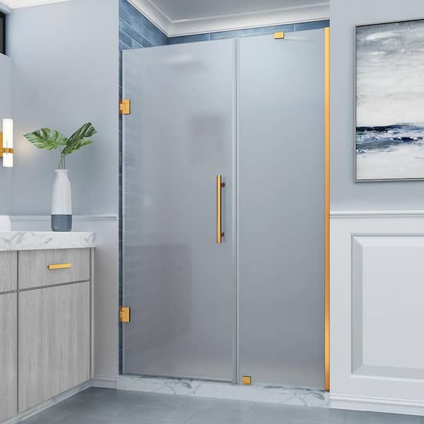 Belmore 45.25 in. to 46.25 in. W x 72 in. H Frameless Pivot Shower Door Frosted Glass in Brushed Gold