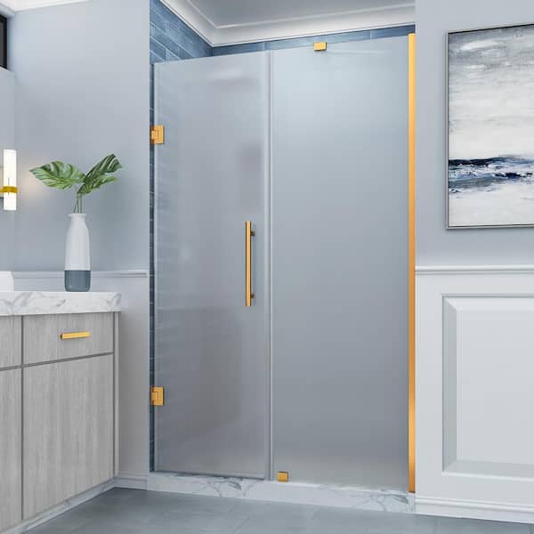 Belmore 53.25 in. to 54.25 in. W x 72 in. H Pivot Frameless Shower Door Frosted Glass in Brushed Gold