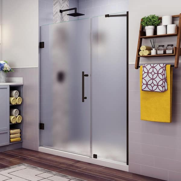 Belmore 54.25 in. to 55.25 in. x 72 in. Frameless Hinged Shower Door with Frosted Glass in Bronze