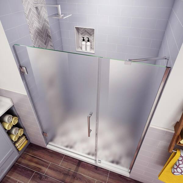 Belmore 54.25 in. to 55.25 in. x 72 in. Frameless Hinged Shower Door with Frosted Glass in Stainless Steel