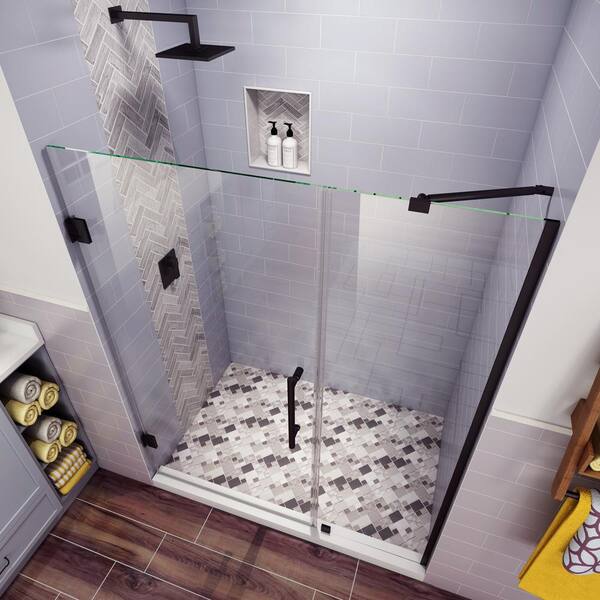 Belmore 62.25 in. to 63.25 in. x 72 in. Frameless Hinged Shower Door in Matte Black
