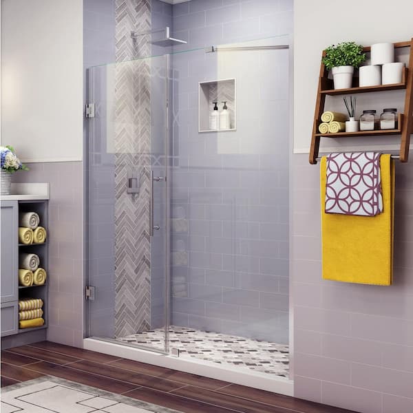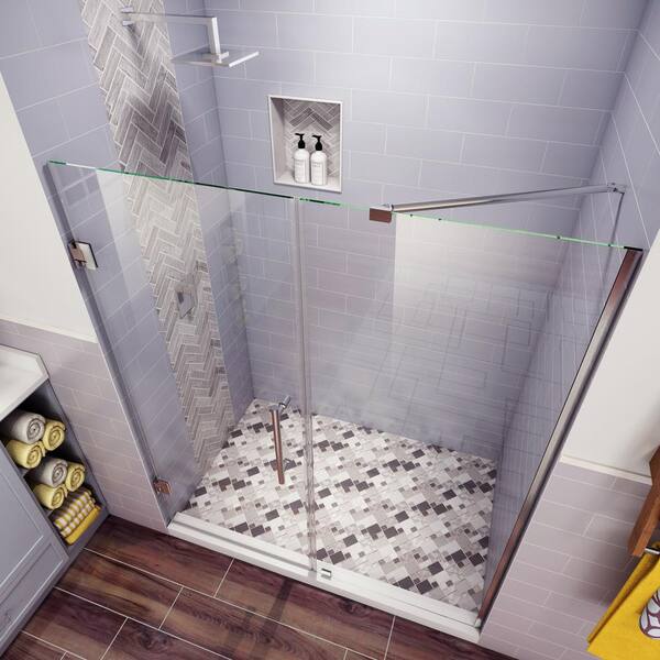 Belmore 62.25 in. to 63.25 in. x 72 in. Frameless Hinged Shower Door in Stainless Steel