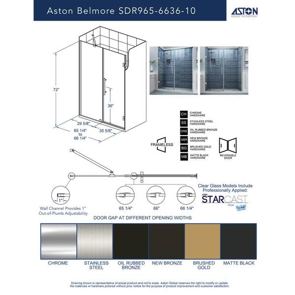Belmore 65.25 - 66.25 in. W x 72 in. H Frameless Hinged Shower Door in Brushed Gold