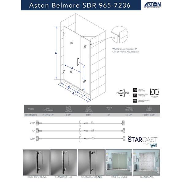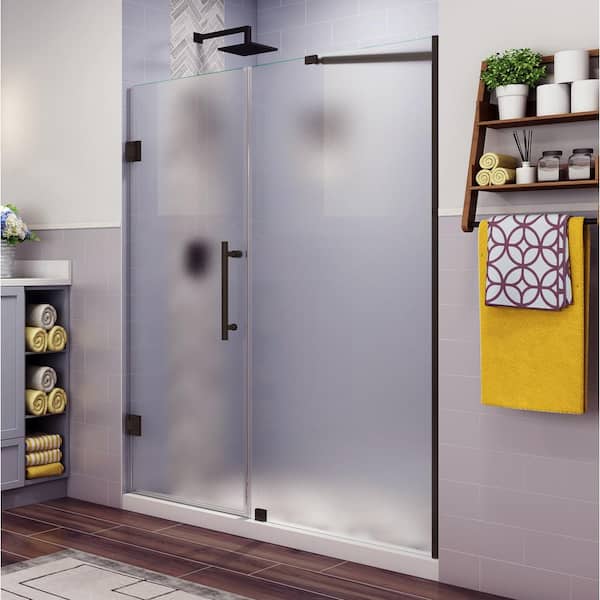 Belmore 71.25 in. to 72.25 in. x 72 in. Frameless Hinged Shower Door with Frosted Glass in Bronze