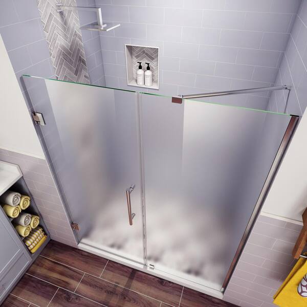 Belmore 71.25 in. to 72.25 in. x 72 in. Frameless Hinged Shower Door with Frosted Glass in Stainless Steel