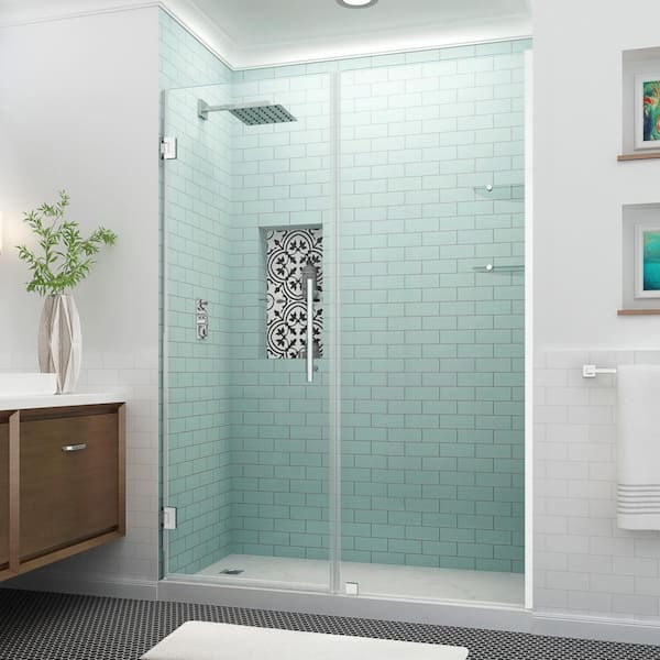Belmore GS 63.25 in. to 64.25 in. x 72 in. Frameless Hinged Shower Door with Glass Shelves in Stainless Steel