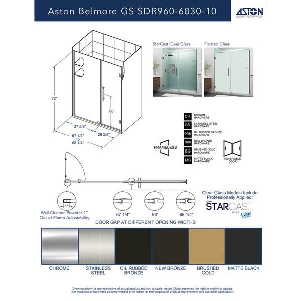 Belmore GS 67.25 in. to 68.25 in. x 72 in. Frameless Hinged Shower Door, Frosted Glass and Glass Shelves in Matte Black