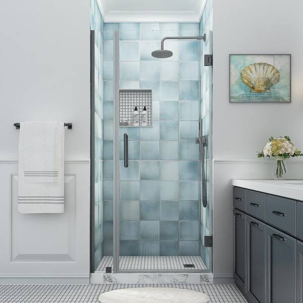 Belmore XL 29.25 - 30.25 in. W x 80 in. H Frameless Hinged Shower Door with Clear StarCast Glass in Matte Black