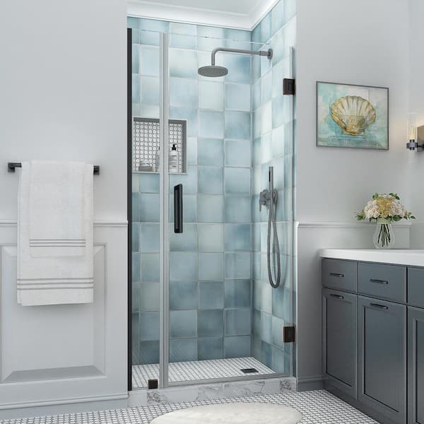 Belmore XL 31.25 - 32.25 in. W x 80 in. H Frameless Hinged Shower Door with Clear StarCast Glass in Oil Rubbed Bronze