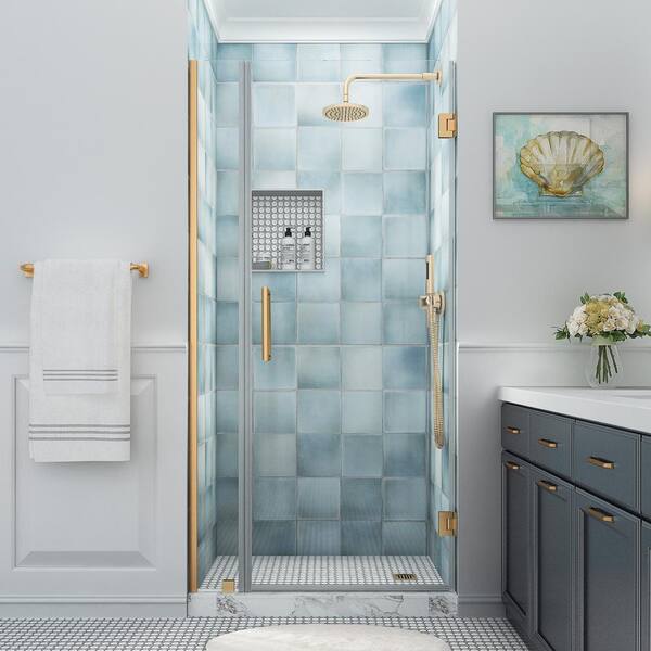 Belmore XL 42.25 - 43.25 in. W x 80 in. H Frameless Hinged Shower Door with Clear StarCast Glass in Brushed Gold