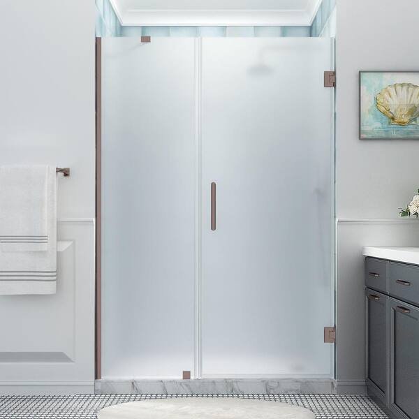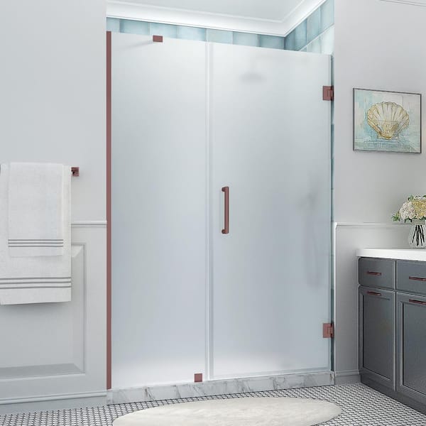 Belmore XL 57.25 - 58.25 in. x 80 in. Frameless Hinged Shower Door with Ultra-Bright Frosted Glass in Bronze