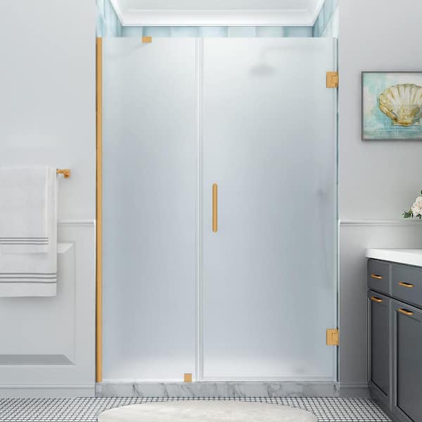 Belmore XL 58.25 - 59.25 in. x 80 in. Frameless Hinged Shower Door with Ultra-Bright Frosted Glass in Brushed Gold