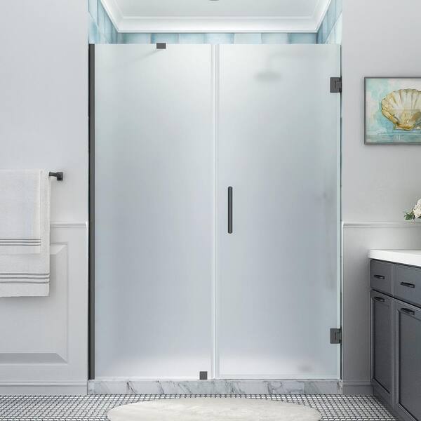 Belmore XL 60.25 - 61.25 in. x 80 in. Frameless Hinged Shower Door with Ultra-Bright Frosted Glass in Matte Black