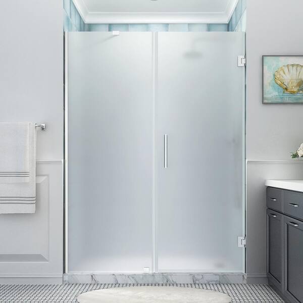 Belmore XL 67.25 - 68.25 in. x 80 in. Frameless Hinged Shower Door with Ultra-Bright Frosted Glass in Stainless Steel