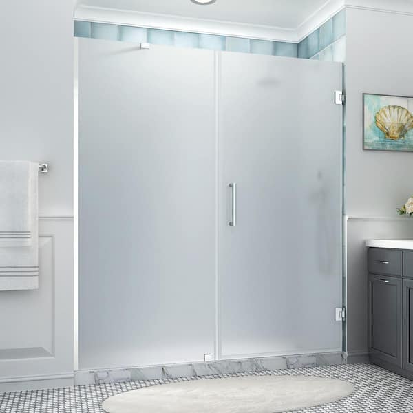 Belmore XL 71.25 - 72.25 in. x 80 in. Frameless Hinged Shower Door with Ultra-Bright Frosted Glass in Polished Chrome