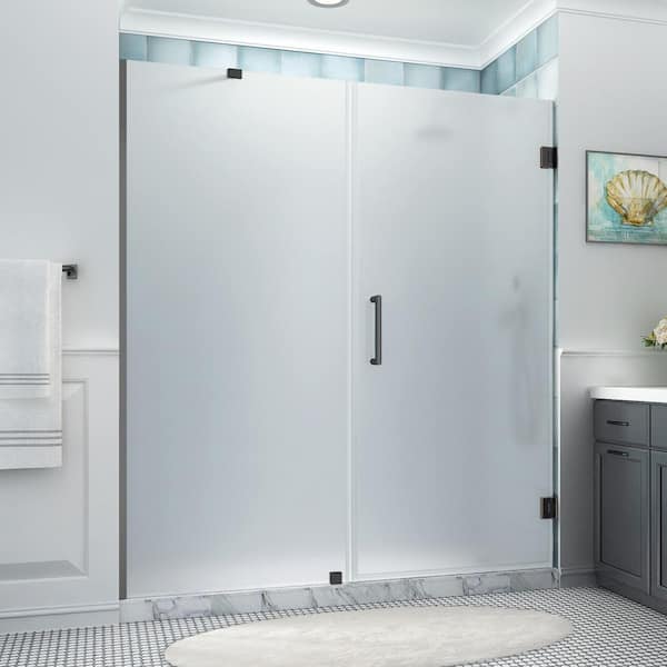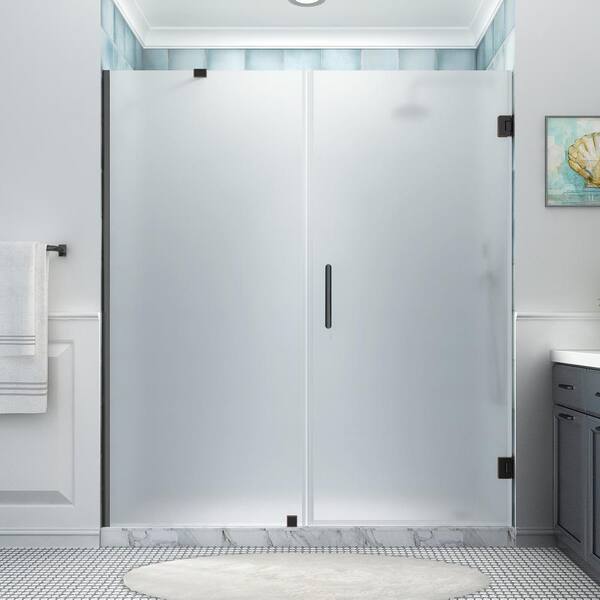 Belmore XL 73.25 - 74.25 in. x 80 in. Frameless Hinged Shower Door with Ultra-Bright Frosted Glass in Oil Rubbed Bronze