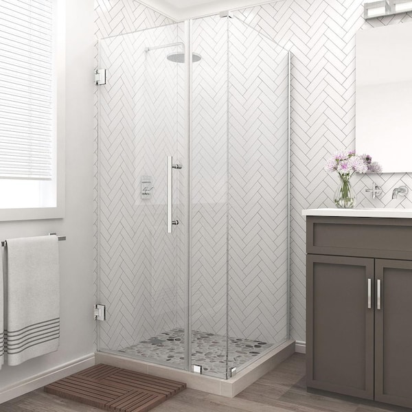 Bromley 28.25 in. to 29.25 in. x 36.375 in. x 72 in. Frameless Corner Hinged Shower Enclosure in Stainless Steel
