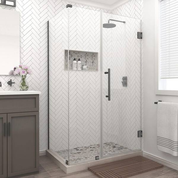 Bromley 43.25 in. to 44.25 in. x 32.375 in. x 72 in. Frameless Corner Hinged Shower Enclosure in Matte Black