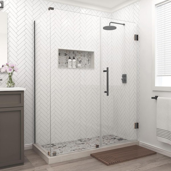 Bromley 57.25 in. to 58.25 in. x 32.375 in. x 72 in. Frameless Corner Hinged Shower Enclosure in Oil Rubbed Bronze