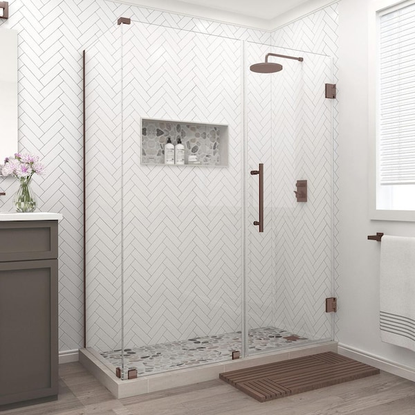 Bromley 61.25 in. to 62.25 in. x 38.375 in. x 72 in. Frameless Corner Hinged Shower Door in Bronze