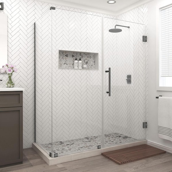 Bromley 69.25 in. to 70.25 in. x 36.375 in. x 72 in. Frameless Corner Hinged Shower Enclosure in Matte Black