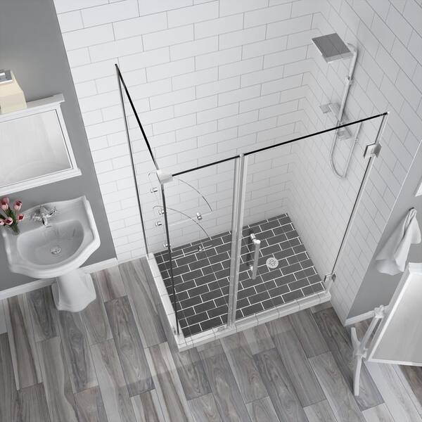 Bromley GS 49.25 to 50.25 x 32.375 x 72 Frameless Corner Hinged Shower Enclosure with Glass Shelves in Stainless Steel