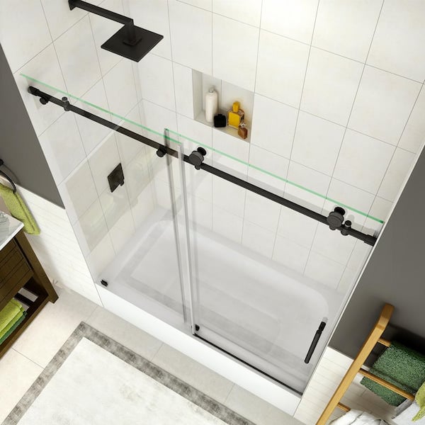 Coraline 56 in. to 60 in. x 60 in. Frameless Sliding Tub Door in Matte Black
