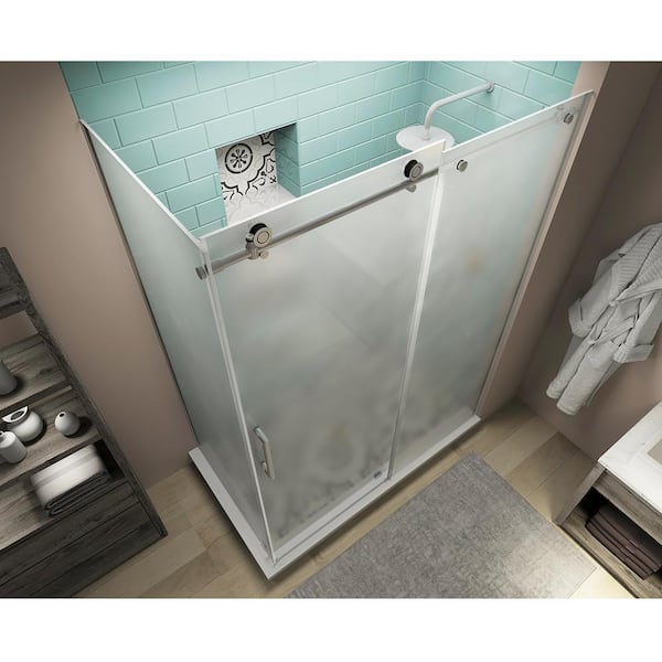 Coraline XL 56 in. - 60 in. x 30 in. x 80 in. Frameless Corner Sliding Shower Enclosure Frosted Glass in Stainless Steel