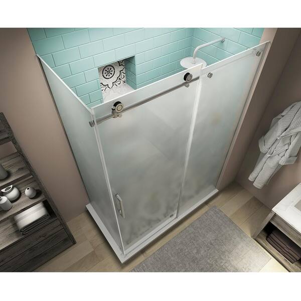 Coraline XL 56 in. - 60 in. x 36 in. x 80 in. Frameless Corner Sliding Shower Enclosure Frosted Glass in Stainless Steel