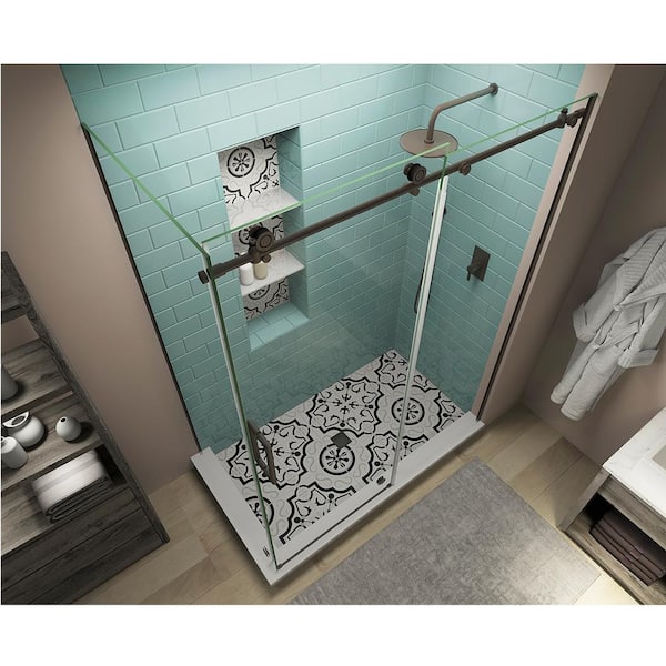 Coraline XL 60 in. - 64 in. x 30 in. x 80 in. Frameless Corner Sliding Shower Enclosure Clear Glass in Bronze Left