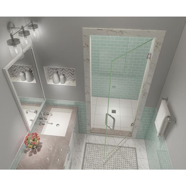 Kinkade XL 30.75 in. - 31.25 in. x 80 in. Frameless Hinged Shower Door with StarCast Clear Glass in Stainless Steel