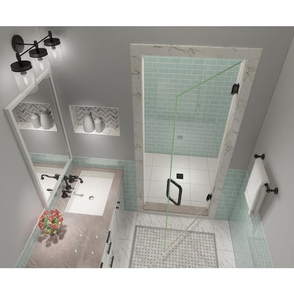 Kinkade XL 32.75 in. - 33.25 in. x 80 in. Frameless Hinged Shower Door with StarCast Clear Glass in Matte Black