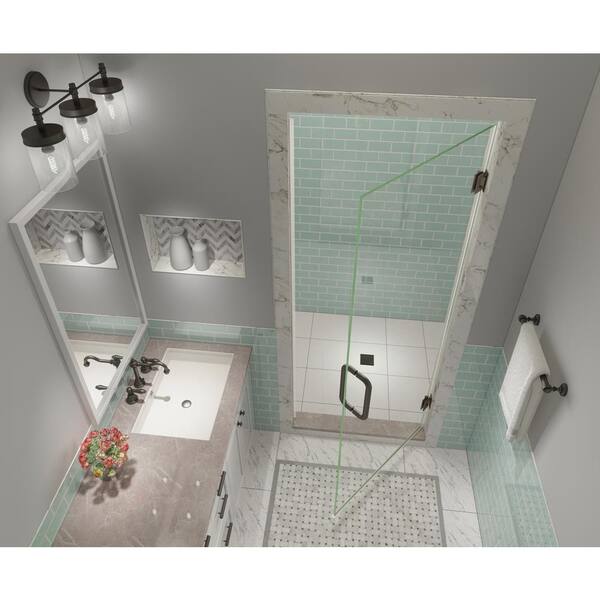 Kinkade XL 34.75 in. - 35.25 in. x 80 in. Frameless Hinged Shower Door with StarCast Clear Glass in Bronze