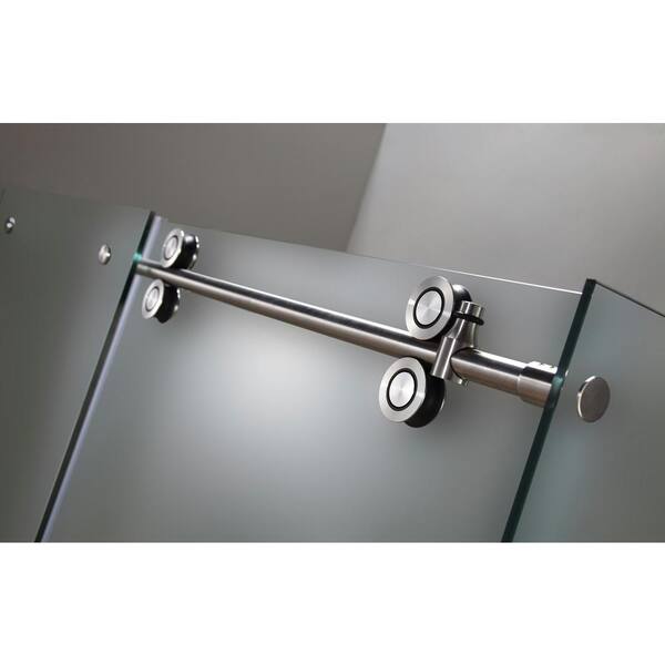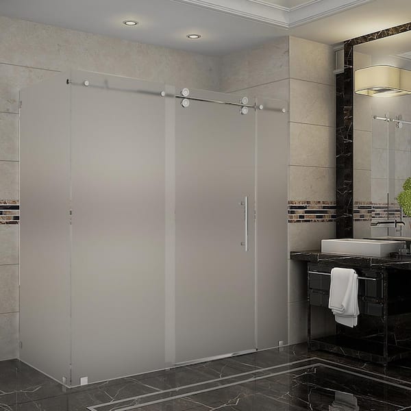 Langham 72 in. x 33.8125 in. x 75 in. Completely Frameless Sliding Shower Enclosure, Frosted Glass in Stainless Steel