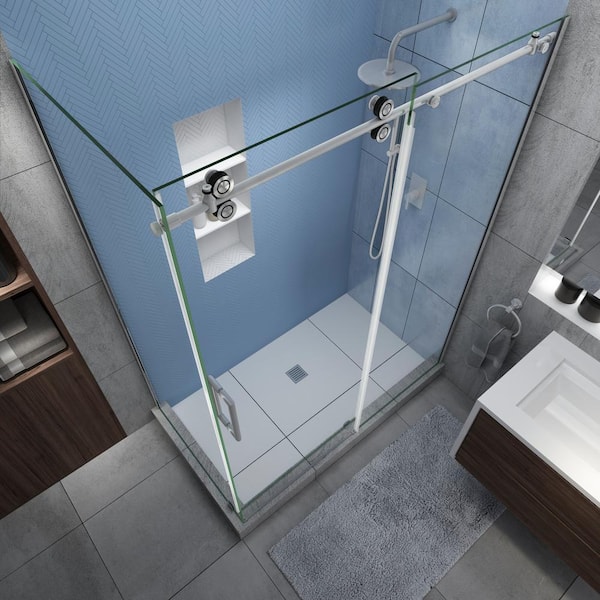 Langham XL 48-52 in. x 34 in. x 80 in. Sliding Frameless Shower Enclosure StarCast Clear Glass in Stainless Steel Left