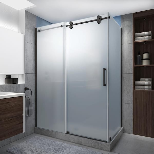 Langham XL 68-72 in. x 36 in. x 80 in. Sliding Frameless Shower Enclosure, Ultra-Bright Frosted Glass in Bronze